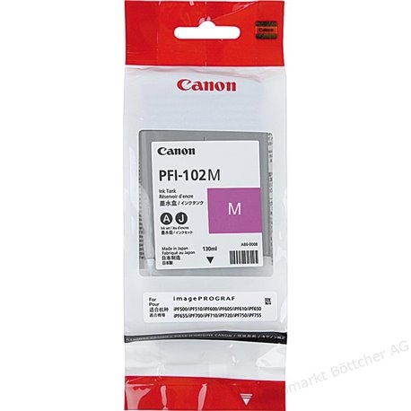 Cartus original Canon Dye Ink Tank PFI-102 Magenta For LP17 LP24 iPF500 iPF6X0 iPF710 720 130ml CF0897B001AA