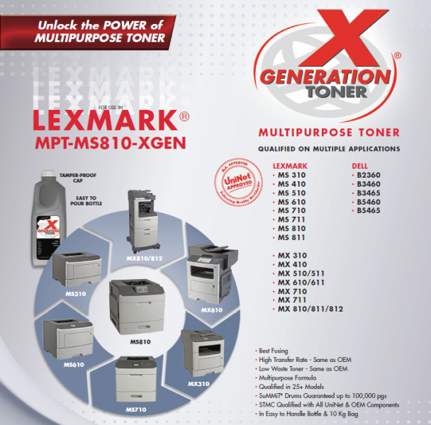 Toner refill Same as OEM Lexmark MS/MX310,410,510/1,610/1,710/1,810/1/2 X-Generation black toner 10kg Bag